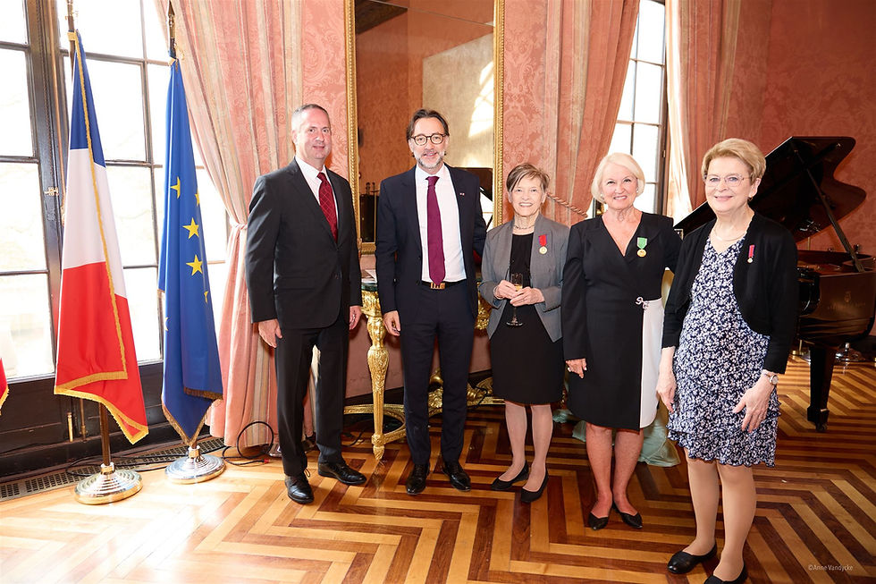 Matthew Wyatt, Treasurer, Cédrik Fouriscot, Consul Général de France à New York, Eileen Walvoord, Vice President, Elaine Leary, Board Member, and Margot Steinhart, President. Copyright 2026 ©Anne Vandycke, All rights reserved